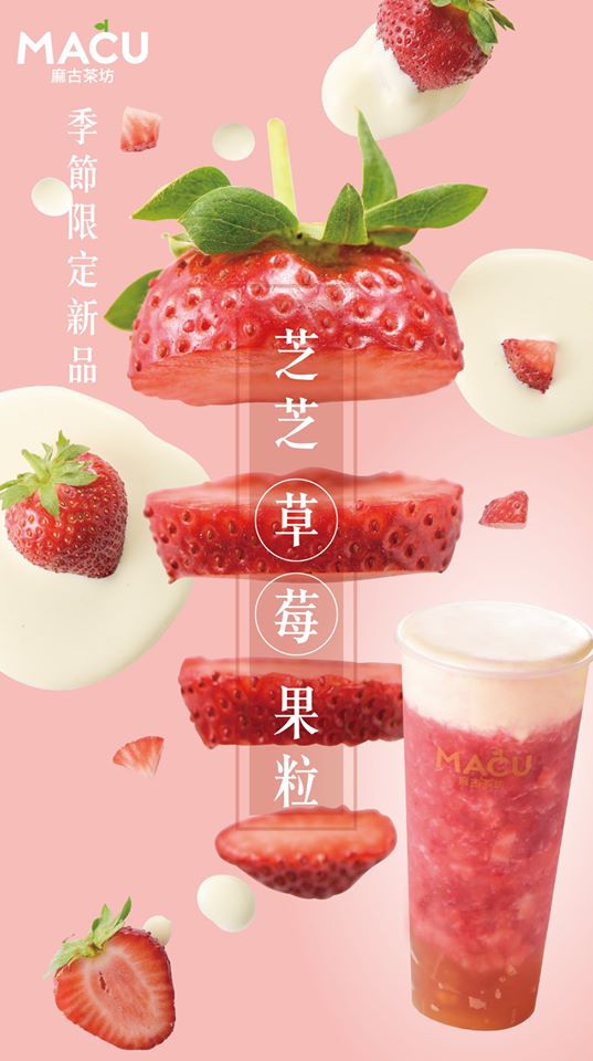 一顆顆可口的草莓加入飲料當中,喝下去吃得到紮實的果肉顆粒,有別於使用濃縮香精過於膩口,細碎的草莓在嘴裡的口感,光想像就覺得好滿足啊!這波冬季限定只到2月29日,要喝的人一定要快把握機會喔!