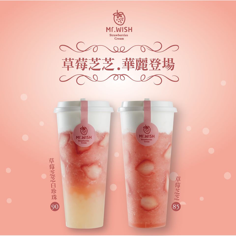 這款號稱是最夢幻的草莓x白珍珠組合!Mr.Wish「草莓芝芝系列」完全洗版小編的IG,讓人不得不掏錢去買一杯嚐看看到底是什麼滋味。店家大器的放入好幾顆草莓,從杯身就看得到草莓漂浮在粉色果汁中,太狂了吧!上頭還有奶蓋作點綴,有兩種口味可選擇,要不要加珍珠也是看個人喜好喔~