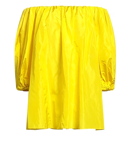 화사한 색감으로 상의에 포인트를 주고 싶다면? VALENTINO의 오프숄더 블라우스는 어때? 실크 재질로 고급스러운데다 컬러는 옐로우 컬러로 화사한 색감으로 봄웜이 입기 딱 좋은 컬러야. 또한 아무 장식이 없기 때문에 컬러가 화려해도 부담 없이 입기 좋다구. 상의는 밴딩으로 되어있어 입으면 고정이 되기 때문에 흘러내릴 걱정 없이 안심하고 입을 수 있으며 7부 기장으로 봄에도 입기 아주 좋아.