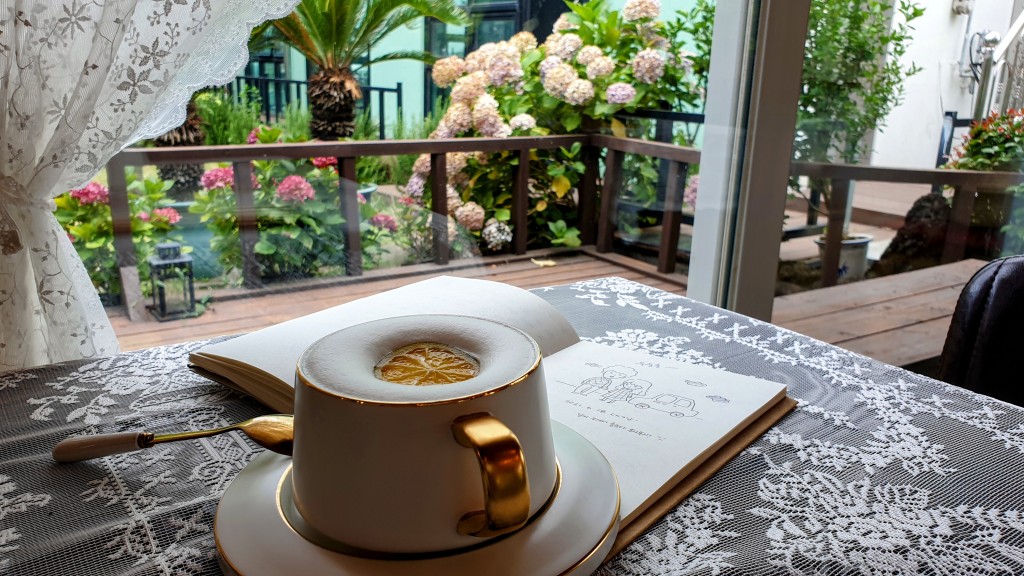 在济州岛也能找到洋溢着书香气息的咖啡馆。Book & Something Café 位于济州岛东北部,以城山日出峰的景色和缤纷色呈的绣球花闻名。坐下来静静地喝一杯咖啡,再配上一本好书,积累丰富知识之余还能放松身心,借由文字的温暖来带动心灵疗愈。