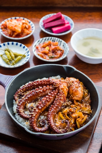 Bengdi 是位于旧左邑坪岱里的一家美食店,曾被美食综艺节目《Tasty Road》介绍之后,名气大涨。店内最受欢迎的韩式料理是章鱼盖饭和千手螺羊栖菜饭。肥美弹牙的八爪鱼在向你的胃招手,诱惑满满,隔着屏幕都垂涎三尺。