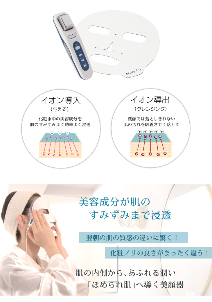 想要稳住肌肤美状态,敷面膜可谓是最快捷的方式。日妞平时敷面膜都会借助 Broad Ion 美容黑科技快速释放面膜潜力,即刻拥有水嫩润泽的肌肤。Broad Ion 清洁保湿面膜美容仪使用非常简单,只需把脸型垫敷在面膜上,离子导入的效果将会把所有的面膜营养充分吸收,让保养效果发挥至最佳,短短15 秒就能实现水、嫩、亮 BB 肌。Broad Ion 美容科技不仅限于脸部护理而已,全身也适用,产品还会附送机器头和用于全身的附属垫,为你提供奢宠护理从头到脚尽显光彩魅力。>>> 【点击前往 Rakuten Ichiba 日本乐天市场购买】