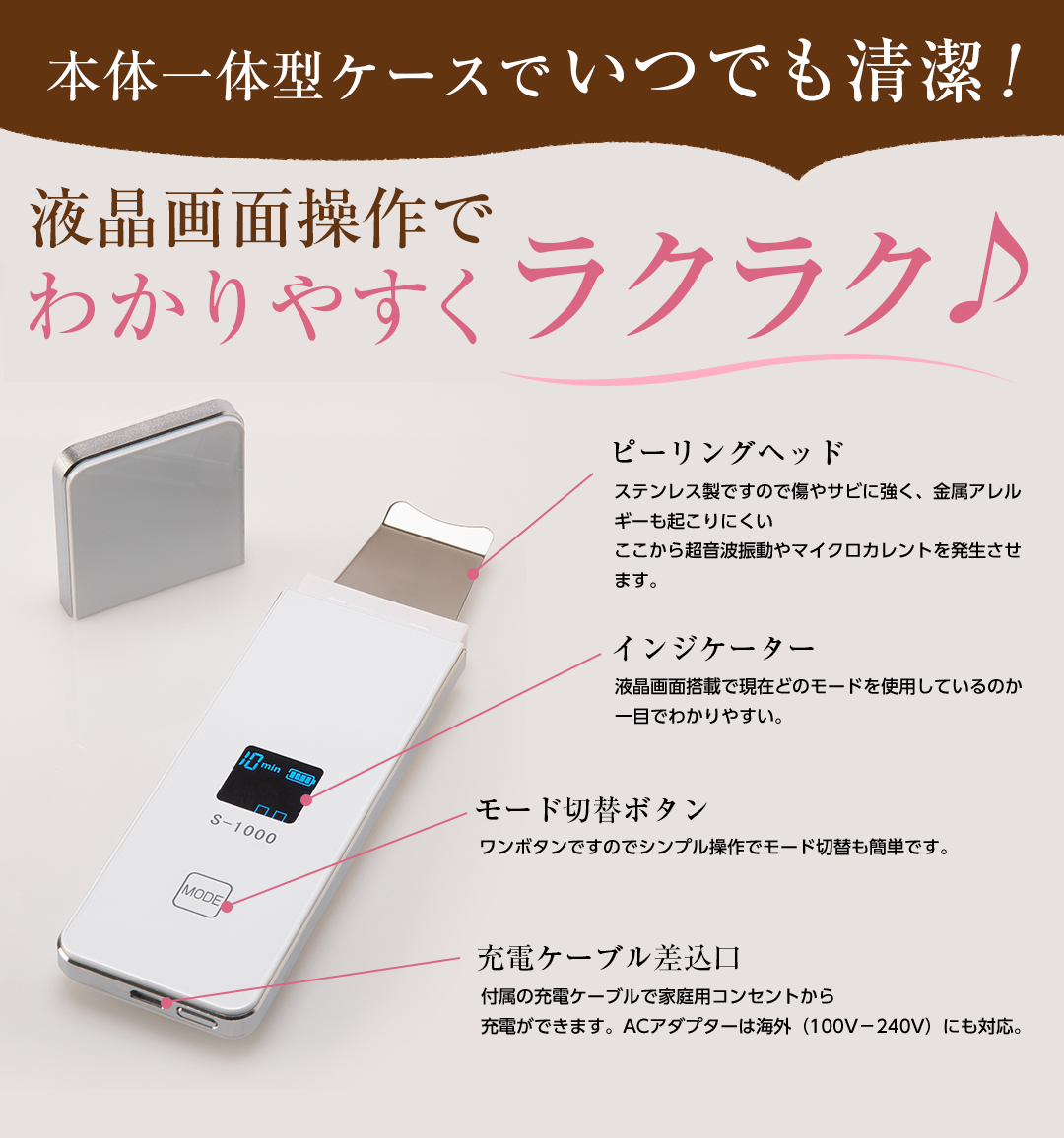 3、【超音波粉刺仪】有助清洁粉刺黑头、去角质 ,让毛孔体验呼吸幸福感容光焕发