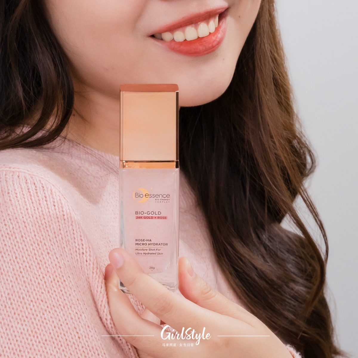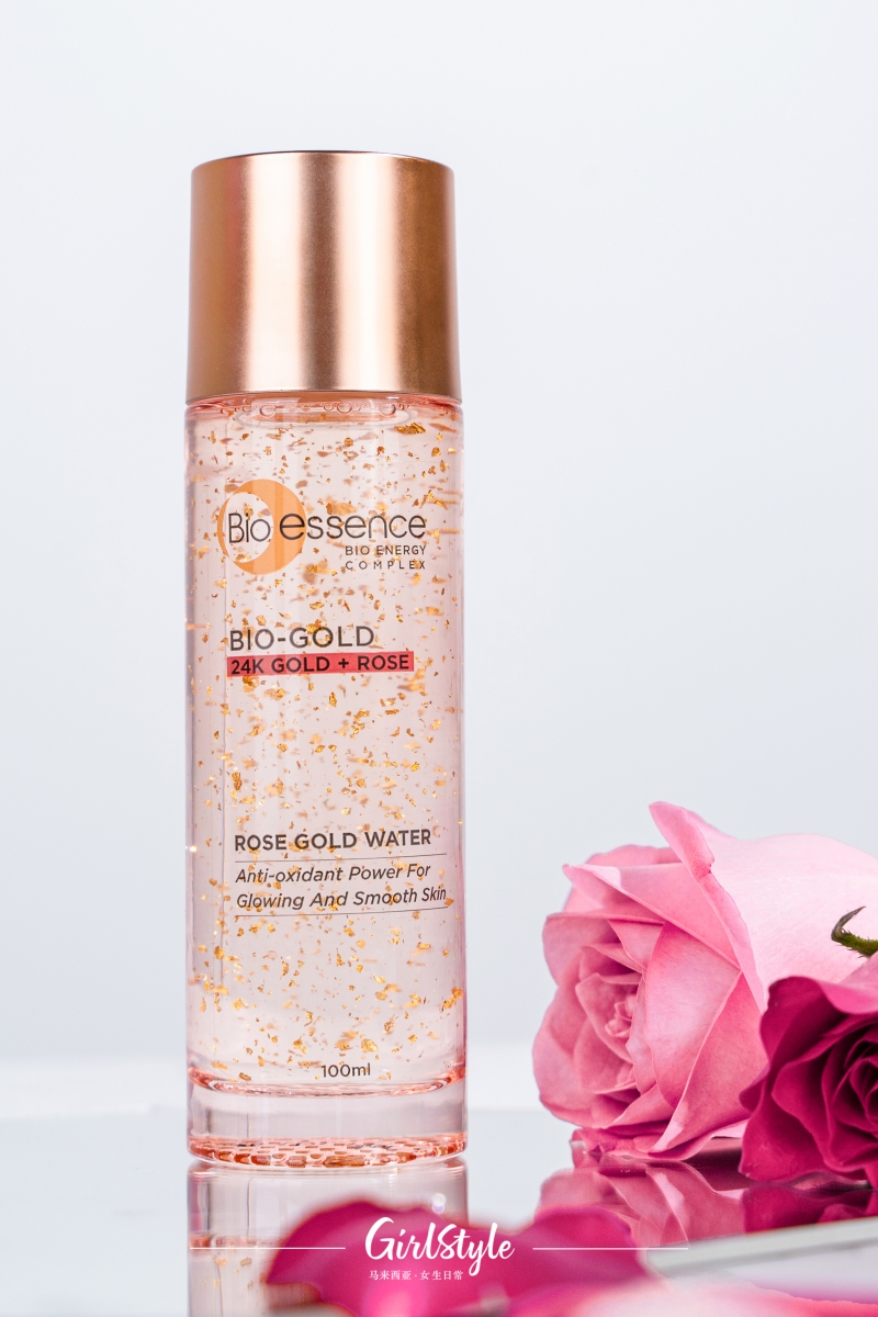 销售No.1 的 Bio-essence Bio-Gold Rose Gold Water 是 2-in-1爽肤水保湿精华,日本玫瑰配方融合独有的 Bio Energy Complex 将有效深入滋养角质层,为干渴的细胞注入源源不绝水能量,维持水油平衡,减少 38% 油脂分泌,全天候赋予肌肤干爽润泽呵护。肌肤喝饱水能让毛孔缩小以及延缓初老痕迹,让女孩毫无负担将肌肤的负能量一一清零找回零毛孔光滑肌!