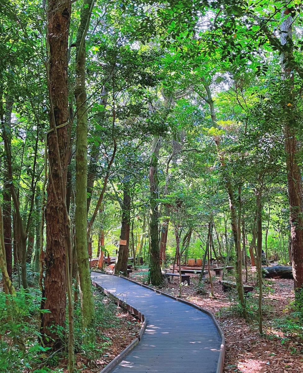 由扁柏树和杉树围绕的入口处,迎面而来的阵阵凉风十分清新!治愈路线总长11公里,大众可选择漫步森林或参与山林治愈项目(需提前预约)由持有资格证的山林治愈指导师带领,大大提升山林治愈效果!
