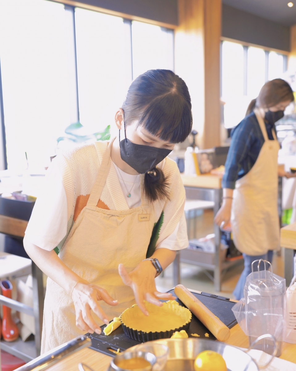 而Toto Atelier也非常重视材料以及成分来源,后院自家种满了非常多蔬果以及花卉,并且在进行烘培前会协助大家前往后院采摘蔬菜水果等,并且装饰用的花卉也是天然的喔!