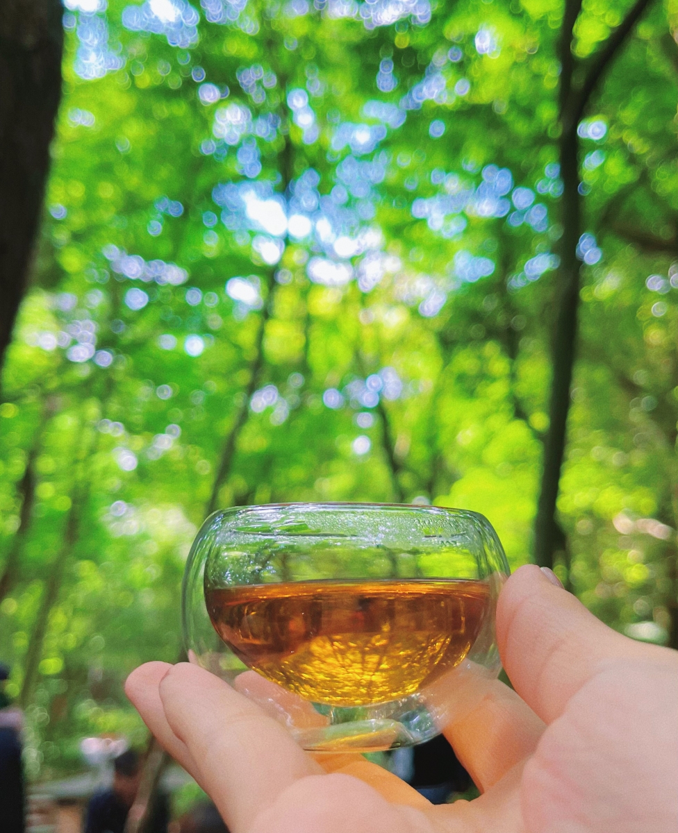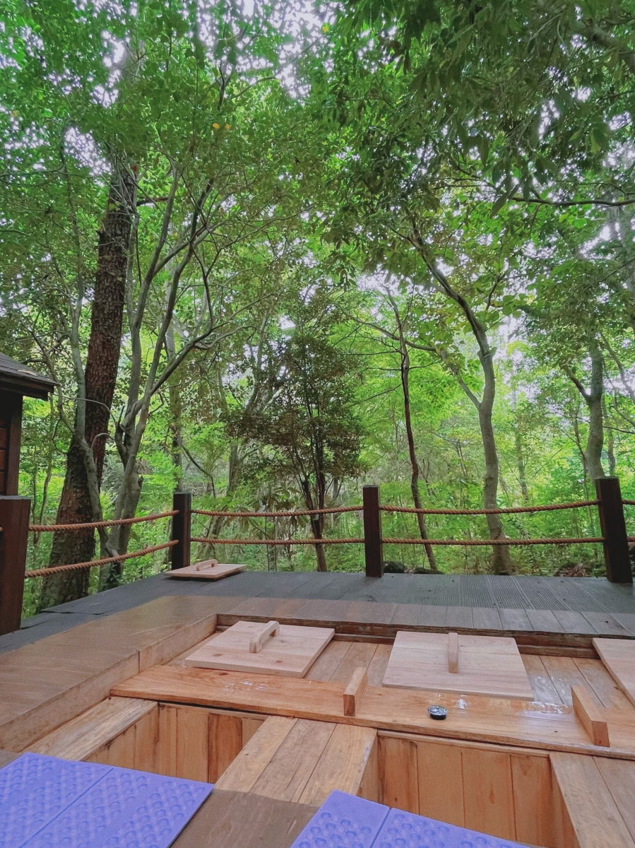 走在扁柏林荫树影间洒落的阳光下细细品味生活静心,一边呼吸着扁柏林的空气净心沉浸在美好疗愈时光,享受赤脚足浴实属一大放松。