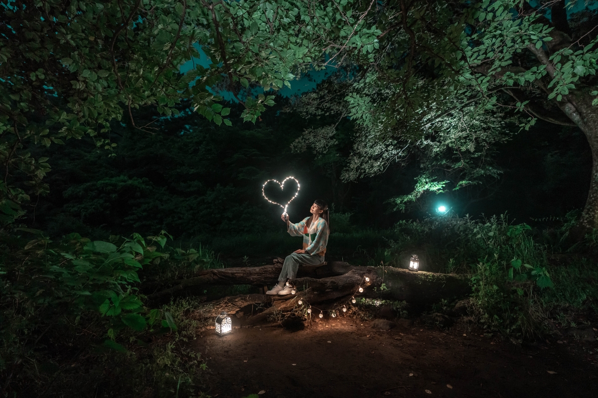 小编跟随大队前往拍摄地点,地点为一个广阔的树荫空地,而专业摄影师Jay已恭候多时欢迎大家的到来,现场的摆设非常精致用心部分道具也是他亲手制作。他也非常细心的现场指导动作和姿势矫正只为能够为大家拍摄出绝美的星空夜景照!