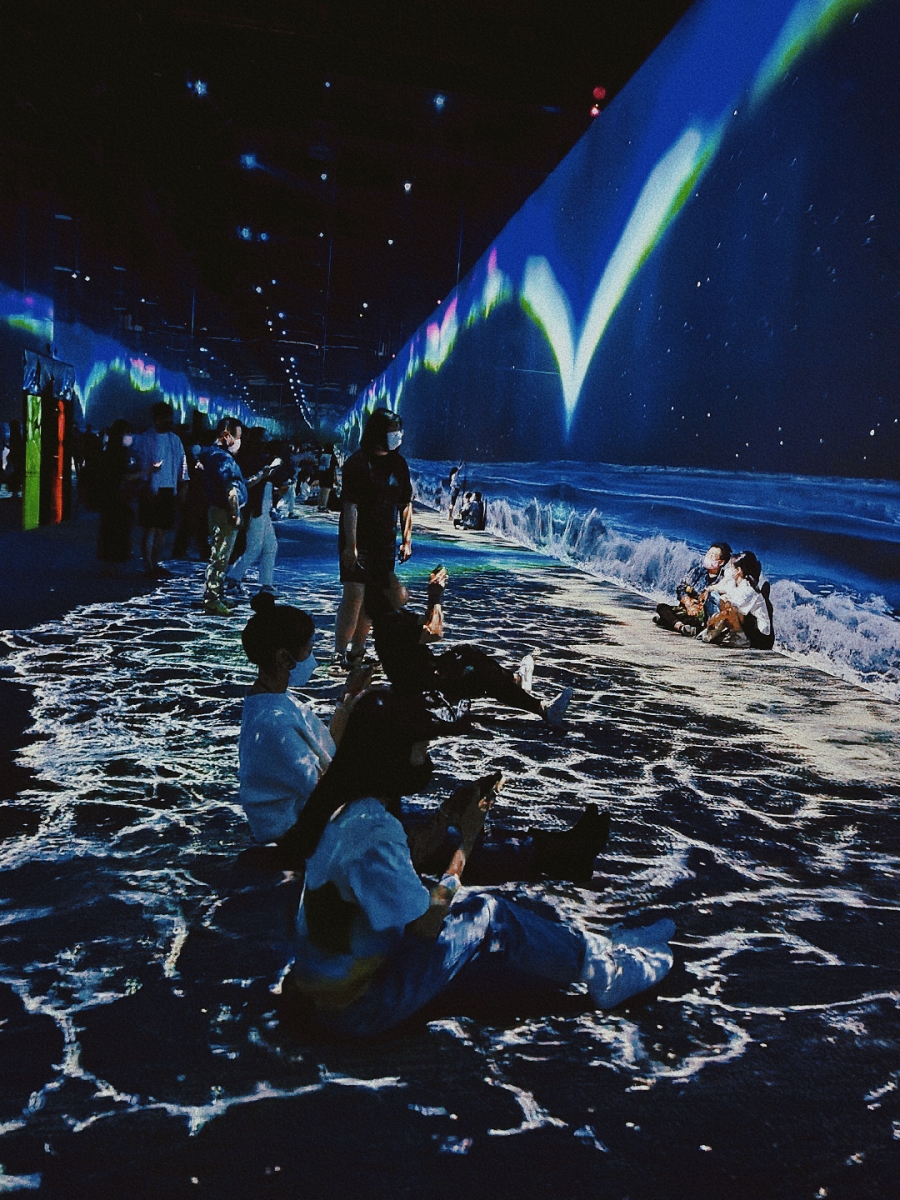 置身在「WAVE海浪」浪涛汹涌的主题馆内,伴随四周潮水拍打的海浪声,瞬间觉得分不清是现实抑或是光影特效。
