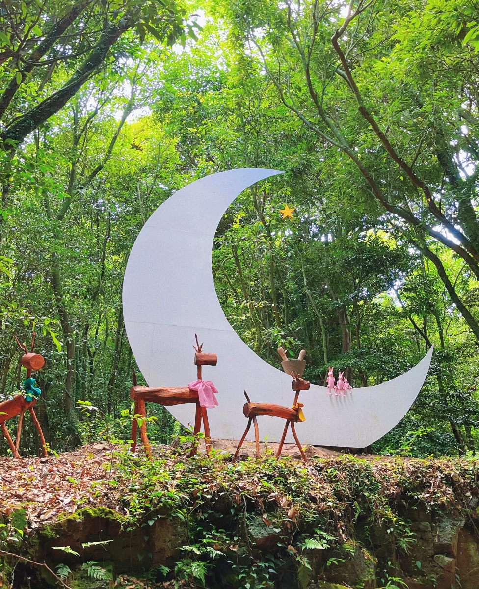 有别于西归浦治之林,Sanyang Keuneonggot Forest是一个具有童话般风景的自然森林!长达1~2 公里,非常适合一家人漫步的森林布道,与自然为伴沿路会看到许多非常可爱的拍照区:ins风满满的月亮、鹿家族、秋千、野餐区,幸运的话还可以碰到牛和马在林间里散步呢!
