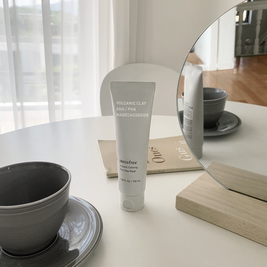 innisfree Volcanic Calming Pore Clay Mask火山泥镇静毛孔洁净面膜,超强毛孔粉刺终结神器!堪称日常毛孔护理的神队友!蕴含了Volcanic Sphere Plus™「济州火山皮脂净化粉末Plus™」标榜拥有7倍更强的皮脂吸附力,更结合了 AHA与PHA,高效溶解并彻底去除堆积在皮肤表面和藏匿于毛孔内的老旧角质及黑头;madecassoside羟基积雪草苷和Jeju Sparkling Mineral Water济州独有碳酸温泉水等强大成分阵容,舒缓保湿肌肤,一敷即打造净透「奇肌」!