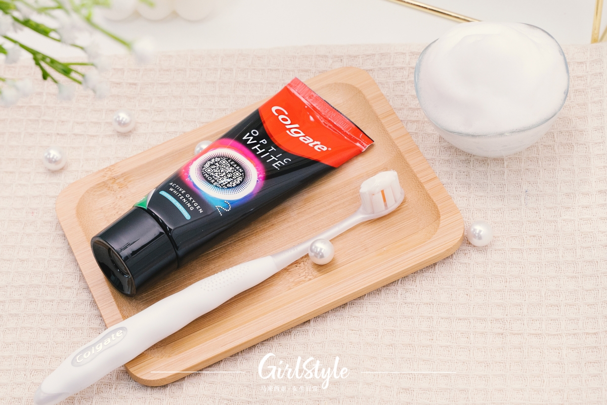 每日咖啡不离手的美编,最近开始意识到喝咖啡逐渐「染黄」了牙齿,一口大黄牙非常损形象,危机感促使美编开始紧张搜索让黄牙回归白牙的妙招,喝一口咖啡再漱一次口实在是无法办到呀!皇天不负苦心人,终于让美编搜罗到牙齿美白神级好物! !找着找着我就被这款Colgate Optic White O2 美白牙膏的精美包装给吸引着!它的包装设计运用了高级黑加经典红的配色极具时尚感,结合清新明亮的顏色搭配,碰撞出别样的包装风格,放在洗漱台上都让整个格调升华了。这么漂亮的包装,马上付钱试用!经过小编的亲身体验后, 真的要为大家安利,让你们也有一口白牙!