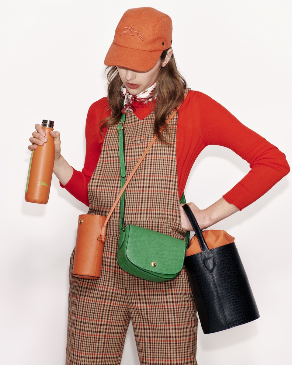 除了水桶包,Épure 系列还采用俄罗斯皮革制作另外两款新作,分别是翻盖的小斜挎包和皮革水瓶袋,当作姐妹包最适合不过。小斜挎包以 Le Pliage 经典折叠包作为设计灵感,手掌大小的迷你尺寸加上马鞍的包型、按扣开合细节,非常小巧别致,活力清新色彩闺蜜同背 EASY 尽显优雅轻盈的气质。另外还想要特别安利 Épure 系列的皮革水瓶袋!圆柱状的水壶袋可以装下 500 毫升钢水瓶,高级皮革订制而成的外观还印有 Longchamp 赛马标志以及复古压纹,和闺蜜连带个水壶出门都能瞬间提高造型的亮点化身为时尚达人!