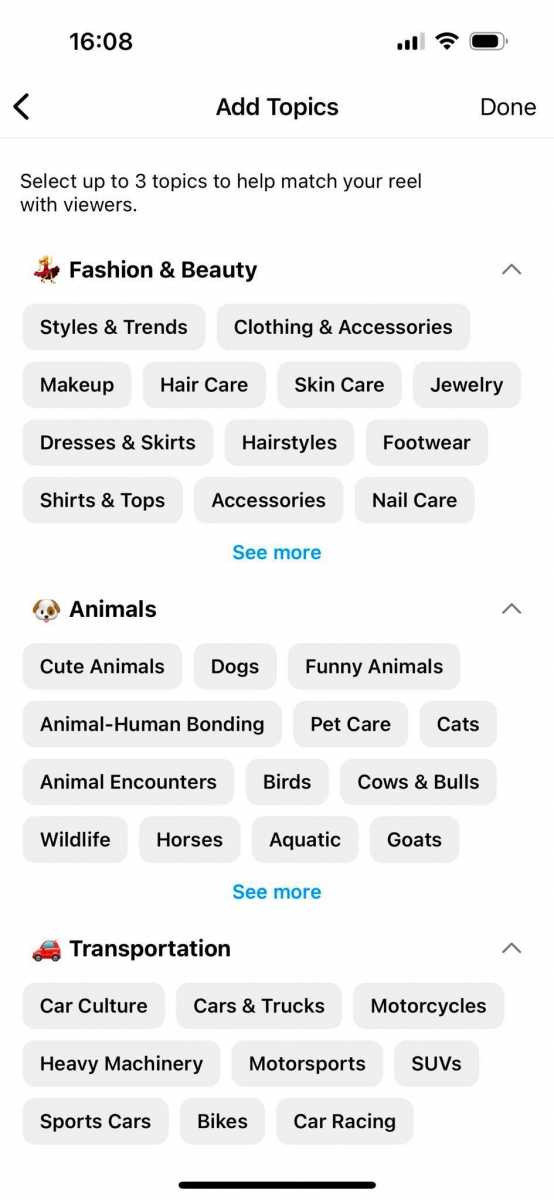 Instagram 近期在 Reels 发展部分越来越积极,发布 Reels 的时候居然能添加「主题」?!~无需花时间抓破头脑想 #hashtag ,只需自由挑选三个和你影片相关的「关键字」就能帮你更好地归类你的视频,吸引更多人看你的 Reels !