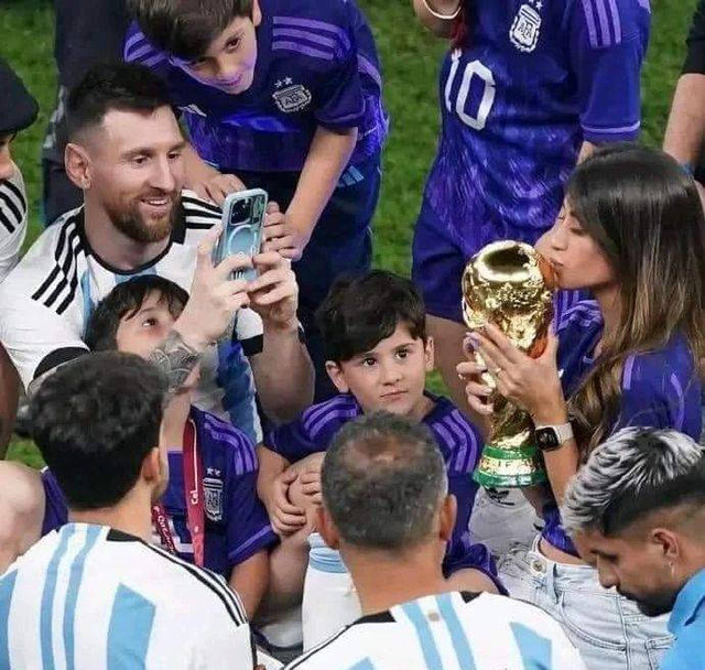 梅西梦想成真的那一刻不忘与妻子紧紧相拥分享胜利的喜悦。妻子 Antonella 在梅西的怀中轻抚热泪,并在社交媒体上晒出一家五口的合影,十分温馨。梅西是世界杯冠军,同样也扮演着丈夫的角色,他和妻子赛后热聊的画面满眼都是爱。。。❤️