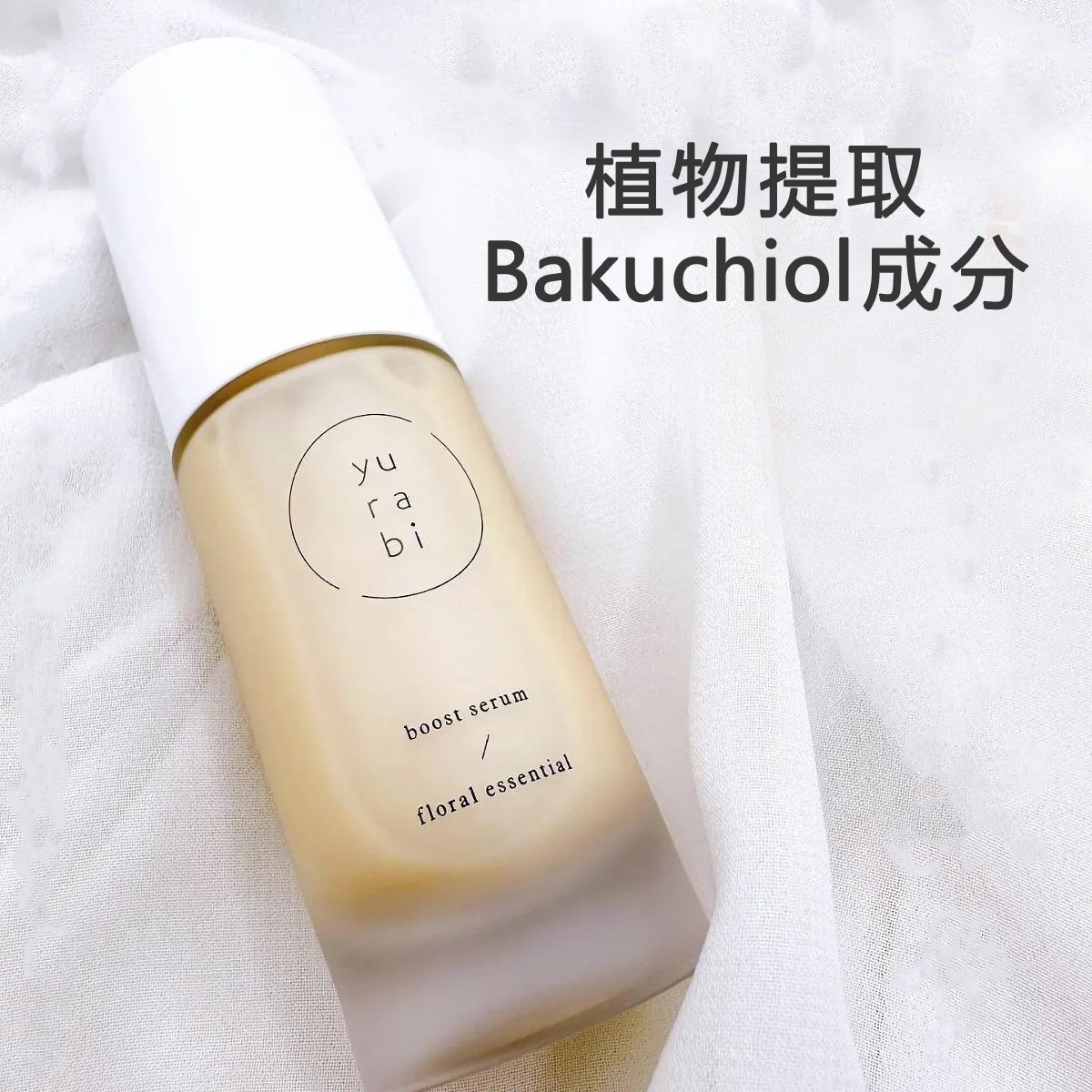 维他命A向来被视为是抗老产品中的王牌成分,其中去年美妆界届刮起一阵 「A醇」保养风潮,大受欢迎。然而,A醇是一剂猛药并非所有肌肤都耐受,用错了会导致肌肤过敏泛红爆痘而Yurabi采用了植物提取的「Bakuchiol」是A醇的最好的替代品,功效近似且效果更温和,淡化肌肤色素暗沉以及细纹等问题,让皮肤更细腻不翻车。有快速赶走自由基延缓衰老的作用,促进胶原蛋白的新生,撑起面部张力锁住年轻的弹力。