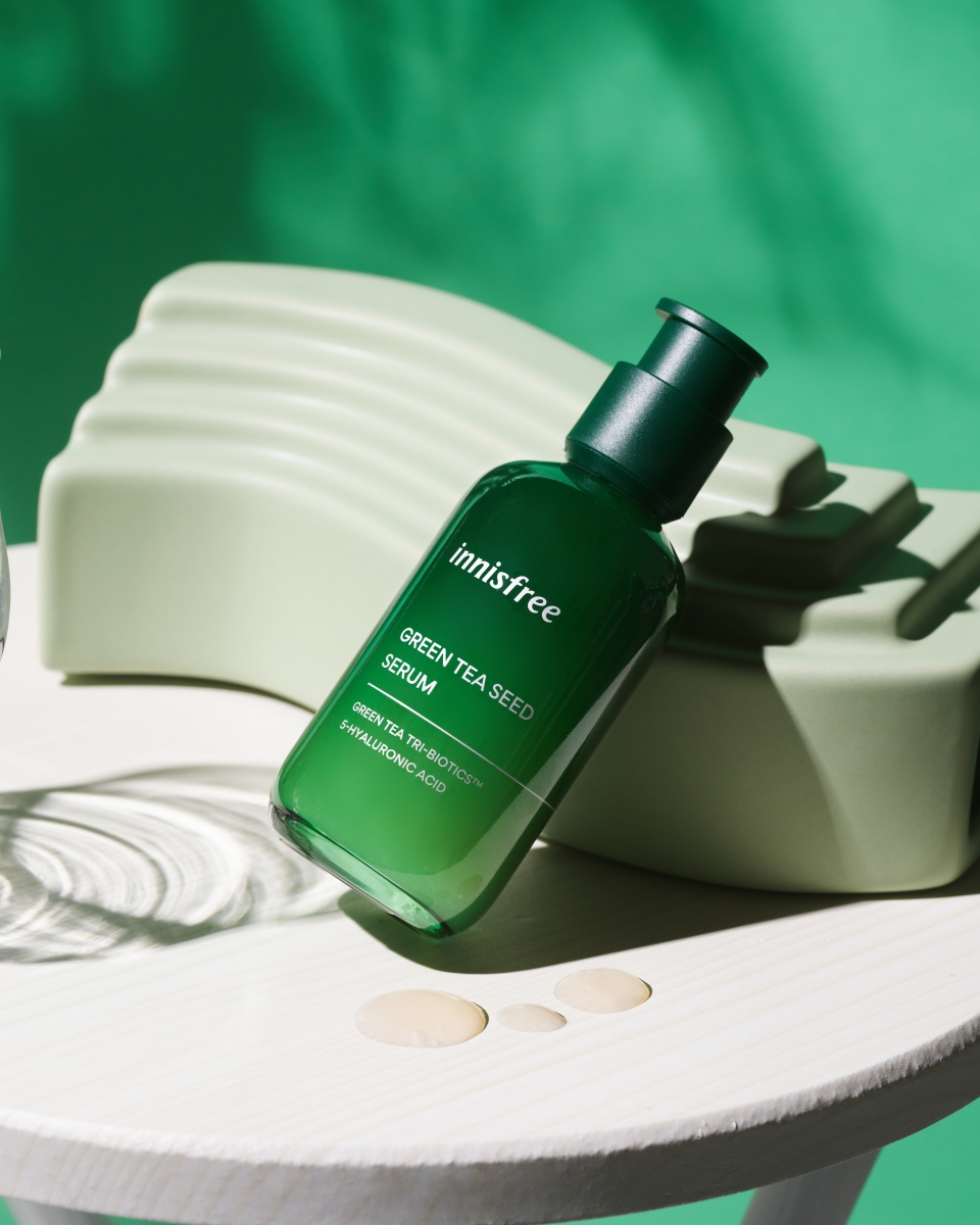 除此之外,向来注重永续环保理念的 INNISFREE采用再生玻璃以及单一材质的按压头,就连包装纸盒也运用生产过程中的绿茶废弃渣与再生纸浆制成,与品牌提倡的绿色生活精神相呼应。