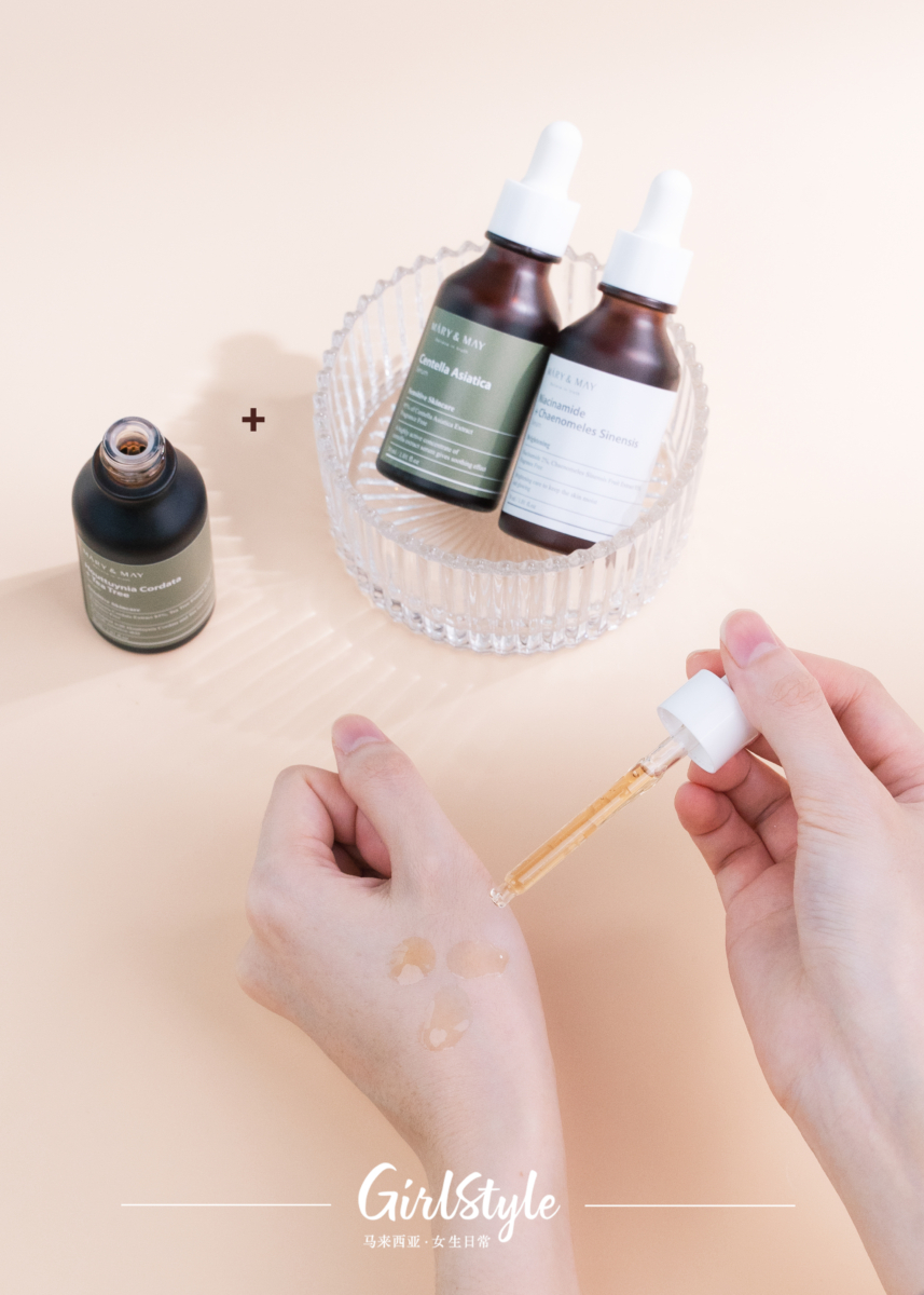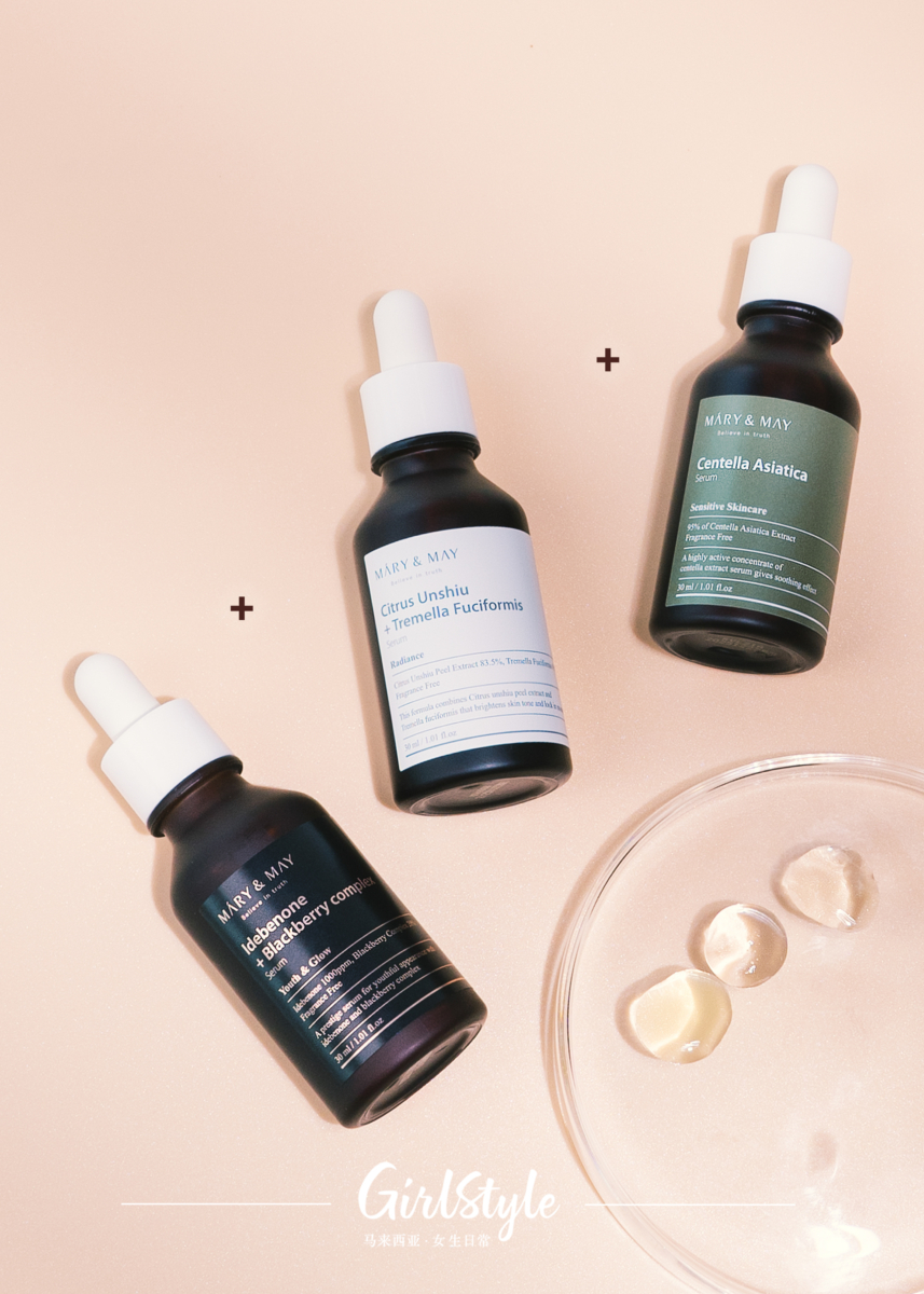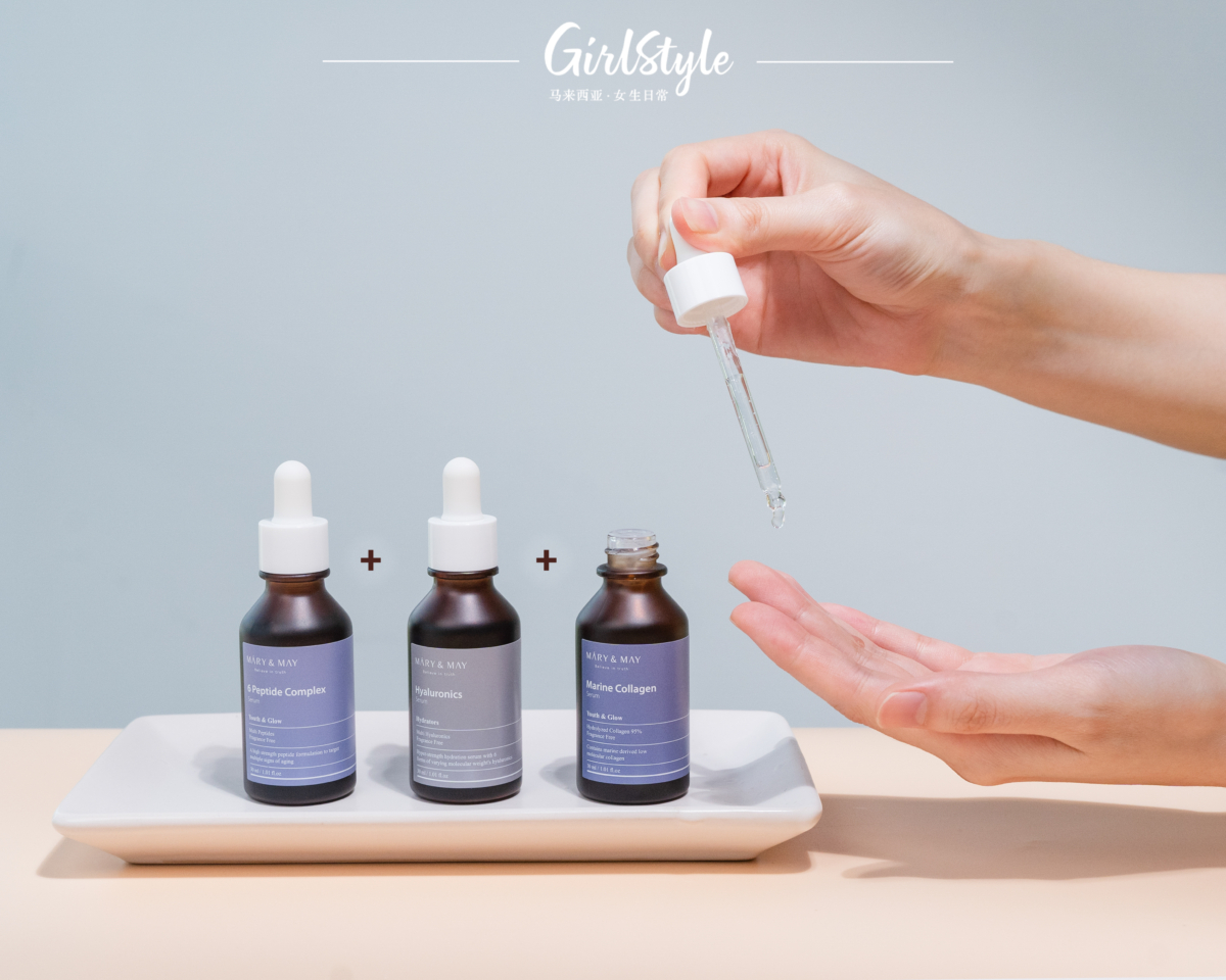从底层保湿、屏障修护、到美白抗氧化,针对每一层肌肤的需求混合使用,层层保护,就能让你收获人人称羡的盛世美颜啦!而除了精华液相互混合,Mary&May也推介大家blend & boost的概念,也就是用所需成分的精华液搭配目前使用的乳霜混合使用,让保养效果up up!