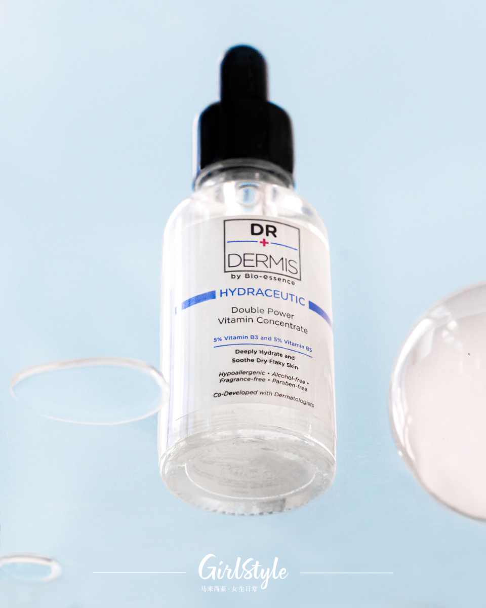 气色蜡黄暗沉?肌肤严重缺水脱皮?没关系,就让隐形保湿膜拯救你!Dr Dermis超效双B维他命精华里面富含各5%的B3+B5成分,不仅容易推开上脸均匀,用完化妆水擦它很给力,绝对值得把它放进你的保养品must buy 名单!