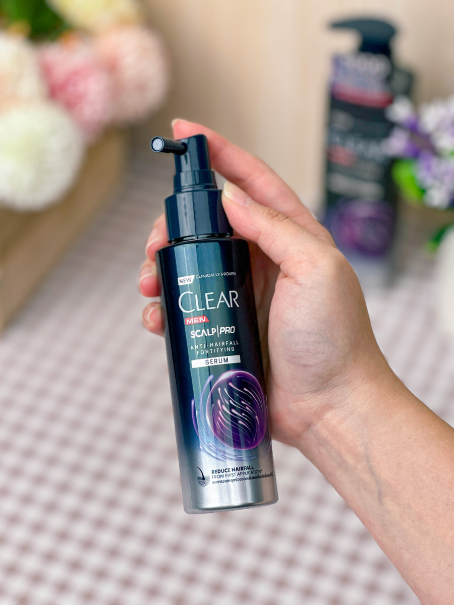 除了常见的压力、过度造型和头皮健康状况不佳等因素,男性的脱发情况也较常随着年纪增大而加剧。为男性设计的 Clear Men Scalp Pro 洗发水以及精华液,经临床证明能在一个月内成功减少超过6000根脱发,非常适合推荐给身边面临脱发危机的男性家人朋友,帮助他们恢复帅气和自信~