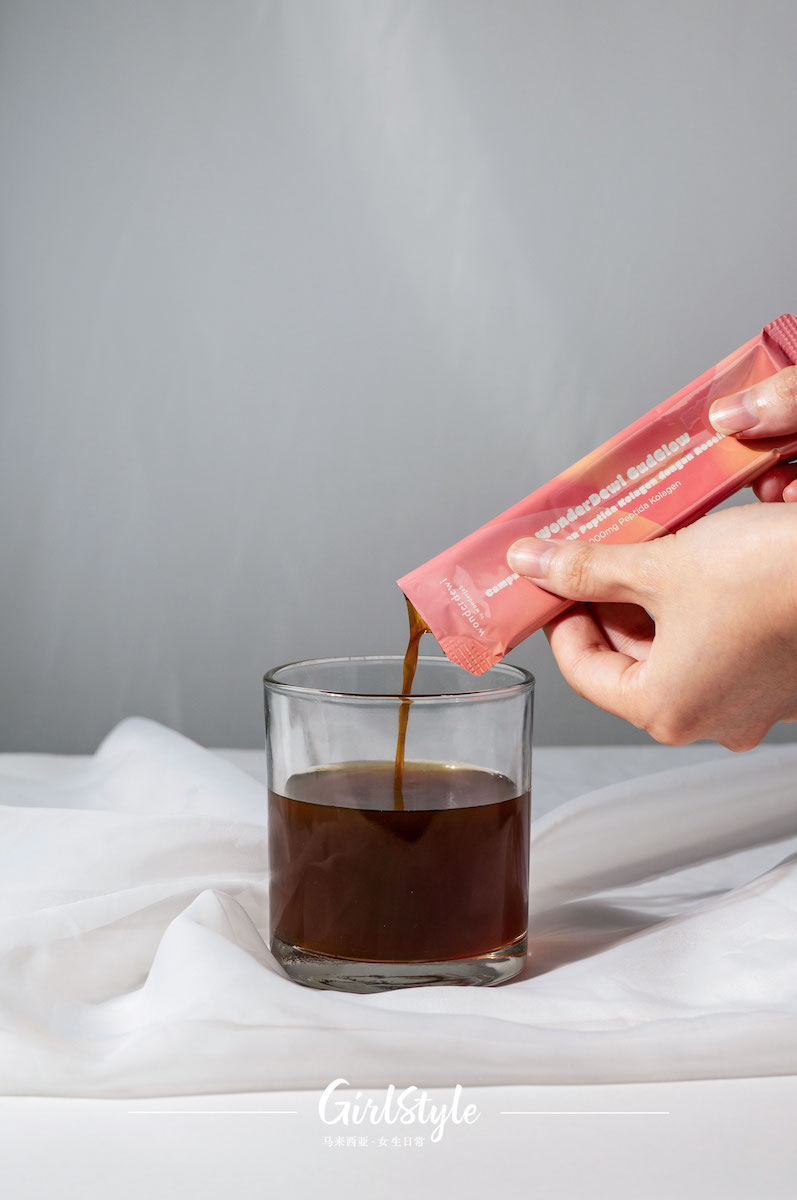 常见的胶原蛋白只存在于动物组织中,或多或少都有一些味道,许多品牌为了掩盖或者去除这些味道都会在这个胶原蛋白里面添加人工甘味剂,反而会造成身体更多的负担。然而,WonderDewi GudGlow™ 采用百分百天然成分,包括海洋胶原蛋白肽、并且不含任何抗生素、激素或防腐剂,让每一位爱美的女孩都能喝得安心。除此之外,白洛神花、菠菜与蓝莓的萃取能够分别锁住水分和刺激胶原蛋白生成,保持幼态脸小妙招赶紧pick它!