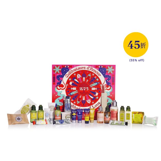 每一年最期待就是L'Occitane 倒数日历,因为一次过就能集齐所有明星产品!这次的圣诞倒数日历是与英国艺术家 Steven Wilson 合作,并以快乐作为创作主题,整体包装非常缤纷多彩,重点是他们选用的都是环保原材料打造,让大家也能为地球尽一份心力。24个格子都藏着不同惊喜,让你和你的挚爱都能享受到全身细致呵护。