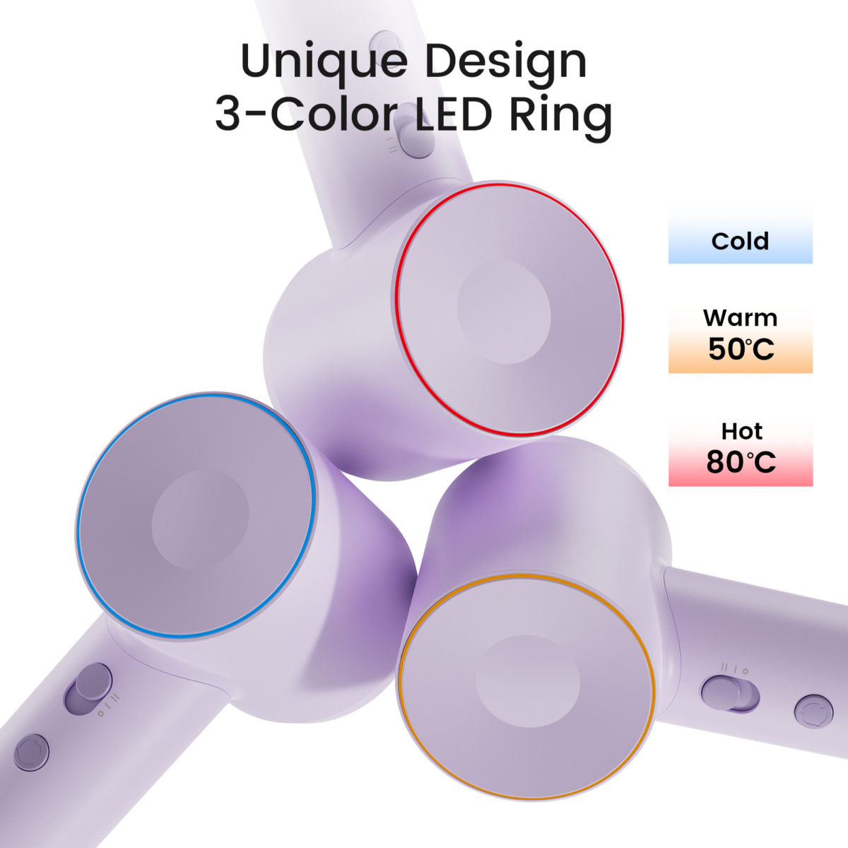 Laifen Swift SE 配有四色灯环,各别代表不同的风力掌控,设有2键8风的它能精准控制好每个模式的温度,蓝色灯环带出自然风温;按一下显示橙色灯环,温度将调节成为中温;按两下则进阶到红色灯环,温度调节为高温;最后长按,则会调节为代表冷热循环的彩色灯环,夜晚吹头也能享受满满的氛围感!