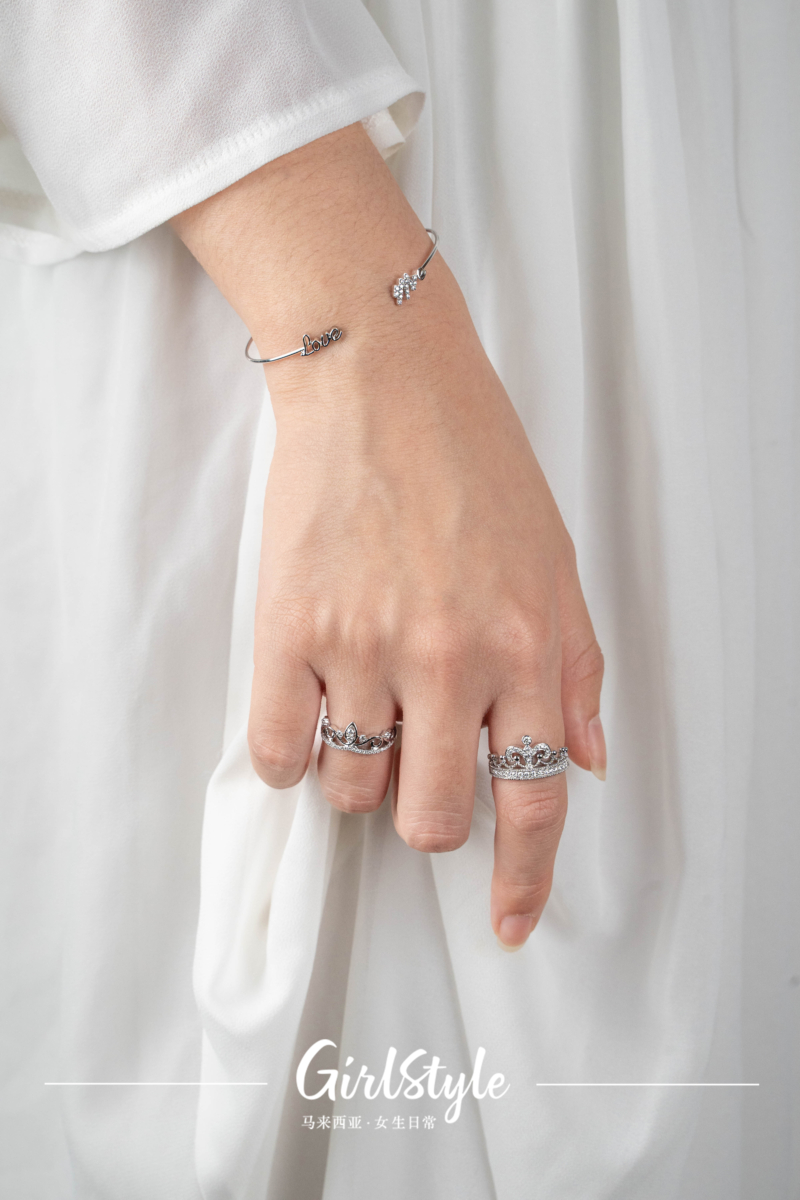 亦或者柜上相对较简单的公主皇冠钻石戒指,也很适合约上好闺蜜一起佩戴!店里有金、银和玫瑰金,以及各种样式供选择,可以依照两个女孩各自的性格挑选,双双约好变身在逃公主,少女心十足!