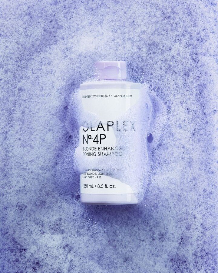Nº.4P洗发水以及Nº.5P护发素,更是专为浅发、金发及灰发而设的紫色养护发产品!它们独家采用了OLAPLEX Bond Building Technology™ 专利,可增强头发的粘合力,打造更强健的秀发~Nº.4P Blonde Enhancer Toning Shampoo 去黄洗发水采用大中颗粒,能够最大程度地达到增强亮泽和保湿调理的效果;蓝紫色素亦能对冲抗黄,减缓漂染后褪色发黄问题。