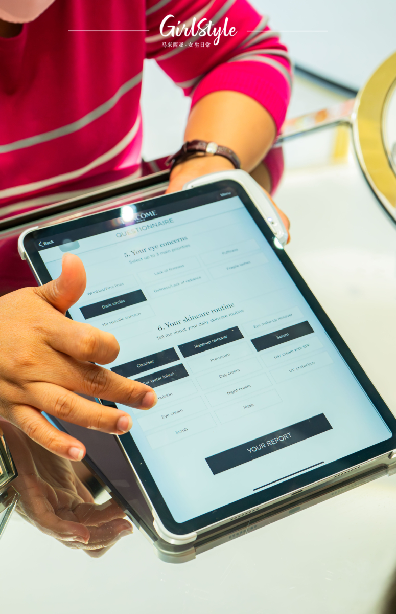 踏入店内的第一件事,可以先享有LANCÔME Skin Screen Service,透过先进的皮肤分析仪器,为你的肤质进行检测,并在20分钟内创建你个性化的肌肤护理方案,仿佛拥有了专属的美容顾问,超级贴心!这项服务是可以提前在官网预约的哟~