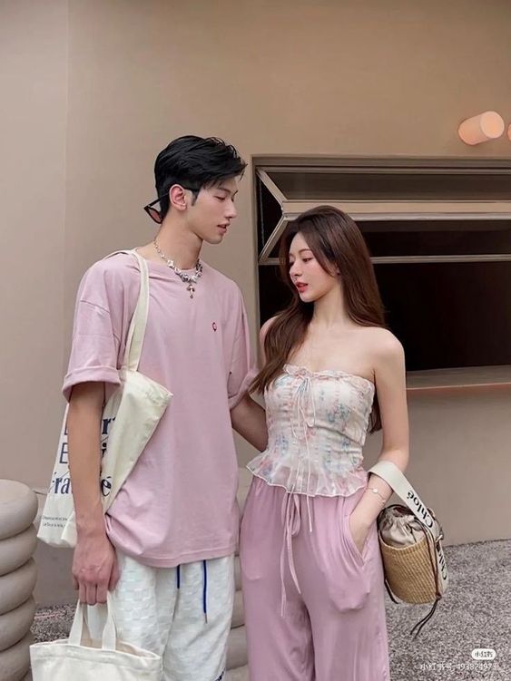 同色系的穿搭是情侣间默契的表现,也是展示和谐感的好方式。男女情侣可以选择相同的颜色进行搭配,例如选用白色、灰色或粉色等基础色调,然后通过不同的细节来区分男女款式。这种穿搭方式简洁而时尚,既能凸显个人特色,又能展示出情侣之间的默契。