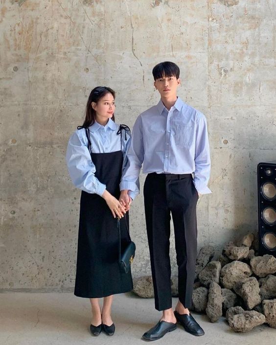 条纹是经典的时尚元素,也是情侣穿搭中常见的选择。条纹图案的上衣可以为穿搭带来亮点和活力,而且拍照起来也不会过于甜腻,男女情侣可以选择相同的条纹图案,或者款式略有不同的条纹进行搭配。虽然款式不一样但元素是大同小异的,轻松创造出视觉上的和谐感。在其下装的搭配上,大可以选择简约的裤子/A字裙,让条纹成为整体造型的亮点。