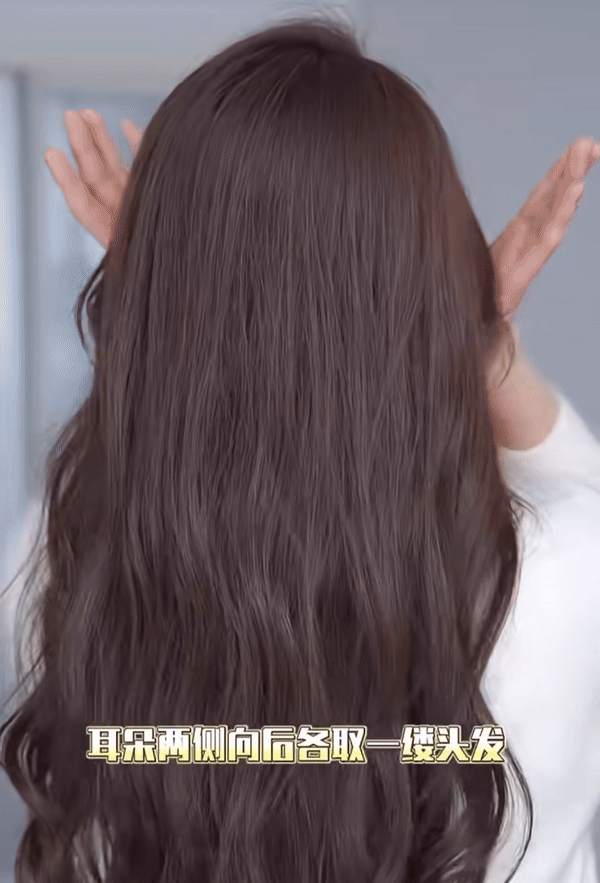 接着,用手固定发束用手把后脑勺头发拨蓬松~这样头型就会更加饱满不会有扁塌的问题。接着把剩余的发束都用橡皮筋固定起来。