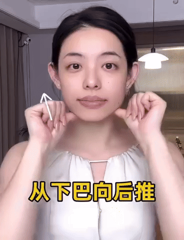 双手摆出剪刀手势,从下巴开始沿着下颚骨,向后按摩直到耳根。这个简单动作能帮助消除下颚线的肌肉,给你更好的塑脸效果来改善肉肉脸。