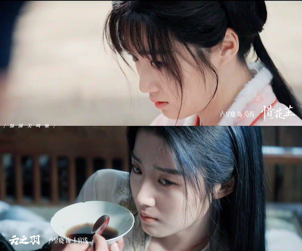在看《惜花芷》时,完全无法将卢昱晓和《云之羽》那个超会撩的白切黑美人“上官浅”对应起来,可见她已经能做到演啥像啥,有能力塑造好一个角色~