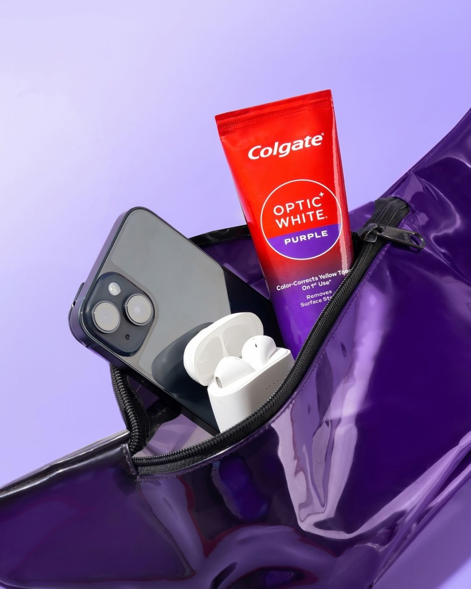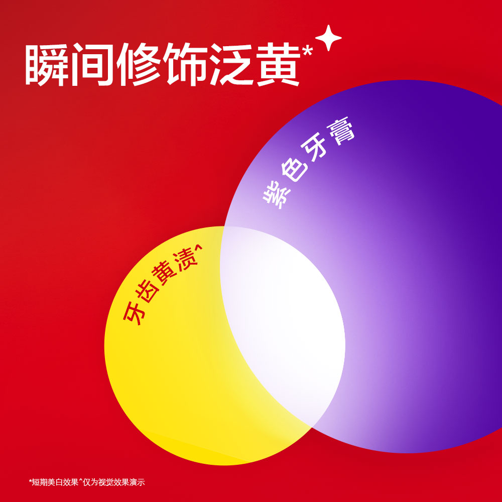 紫色底霜有助于改善暗沉,提亮偏黄肤色,而紫色的牙膏同样有异曲同工之妙!Colgate Optic White Purple 美白牙膏灵感来自于色彩学,紫色、黄色于光学色环上为互补色,意味着紫色和黄色融合后可以互相对冲成中性白色,透过这个原理有助修饰牙齿上黄色牙渍,紫色的牙膏也能让每天乏味的刷牙过程变得更加有趣!