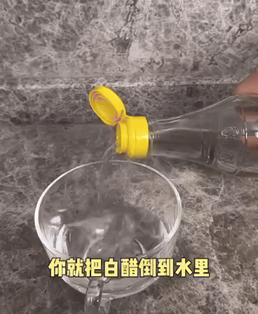 - 准备一个空杯,将白醋倒在水里~给牙刷泡个30秒