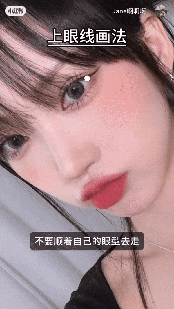 如果想要涂出眼睛的存在感,可以用黑色去画眼线(淡妆也适用);而如果喜欢那种柔柔雾雾的氛围感,则推荐选择玫瑰色的眼线。