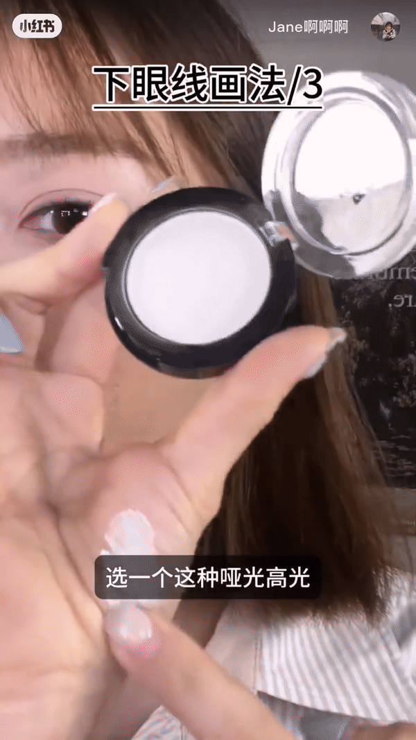 最后还有一个重点大家要注意,就是上下眼线不要衔接❌ 除此之外,我们还可以用哑光高光,从眼尾横着平拉出去,一方面是整理眼线,让线条变干净,另一方面则可以隔开上下眼线,有助于纵向拉长眼睛。