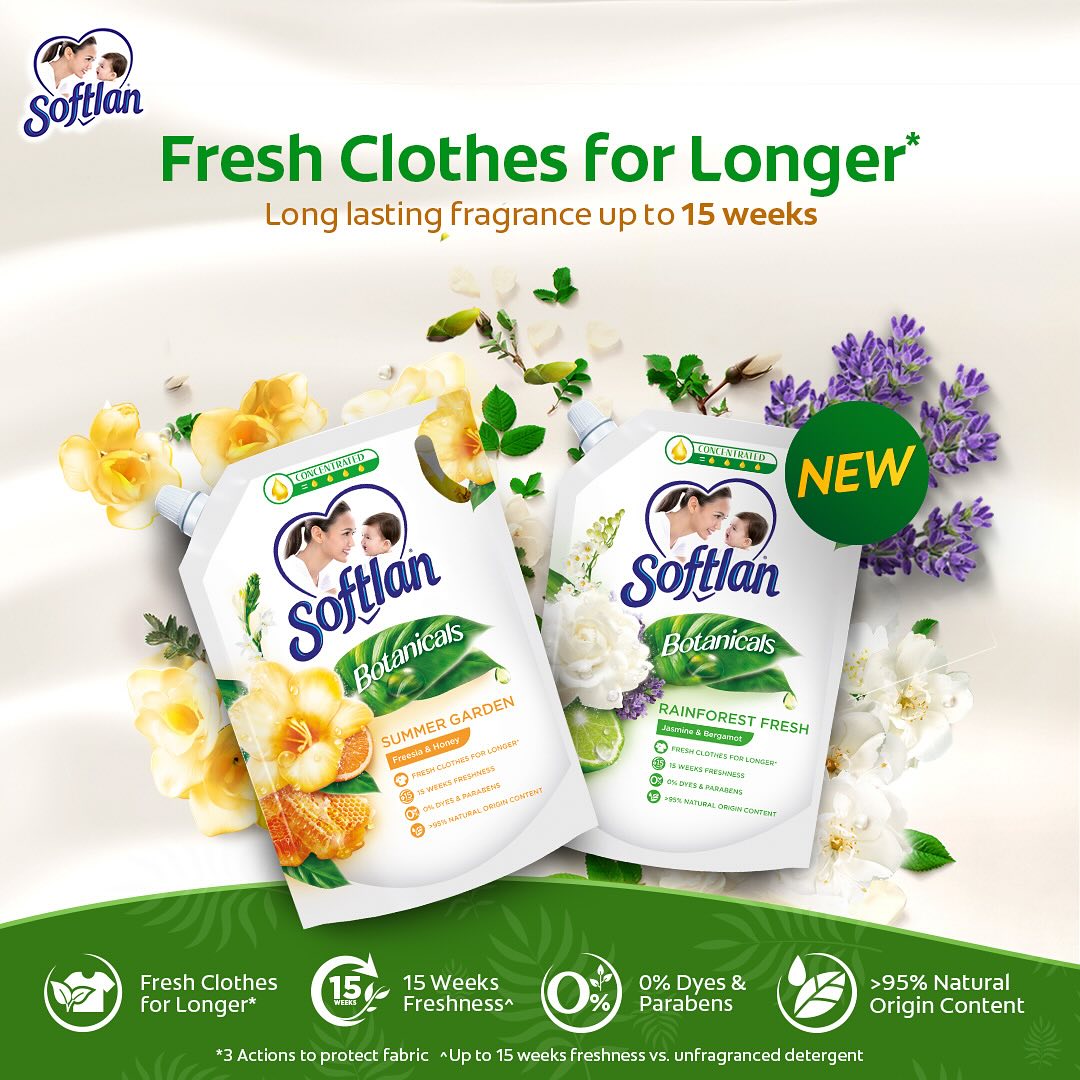 Softlan Botanicals 衣物柔软剂,采用>95% 高天然成份的配方,使用起来更安心!它不止让衣物散发大自然花果清香,还更柔顺亲肤,抗皱易熨烫,保持亮丽色泽~
