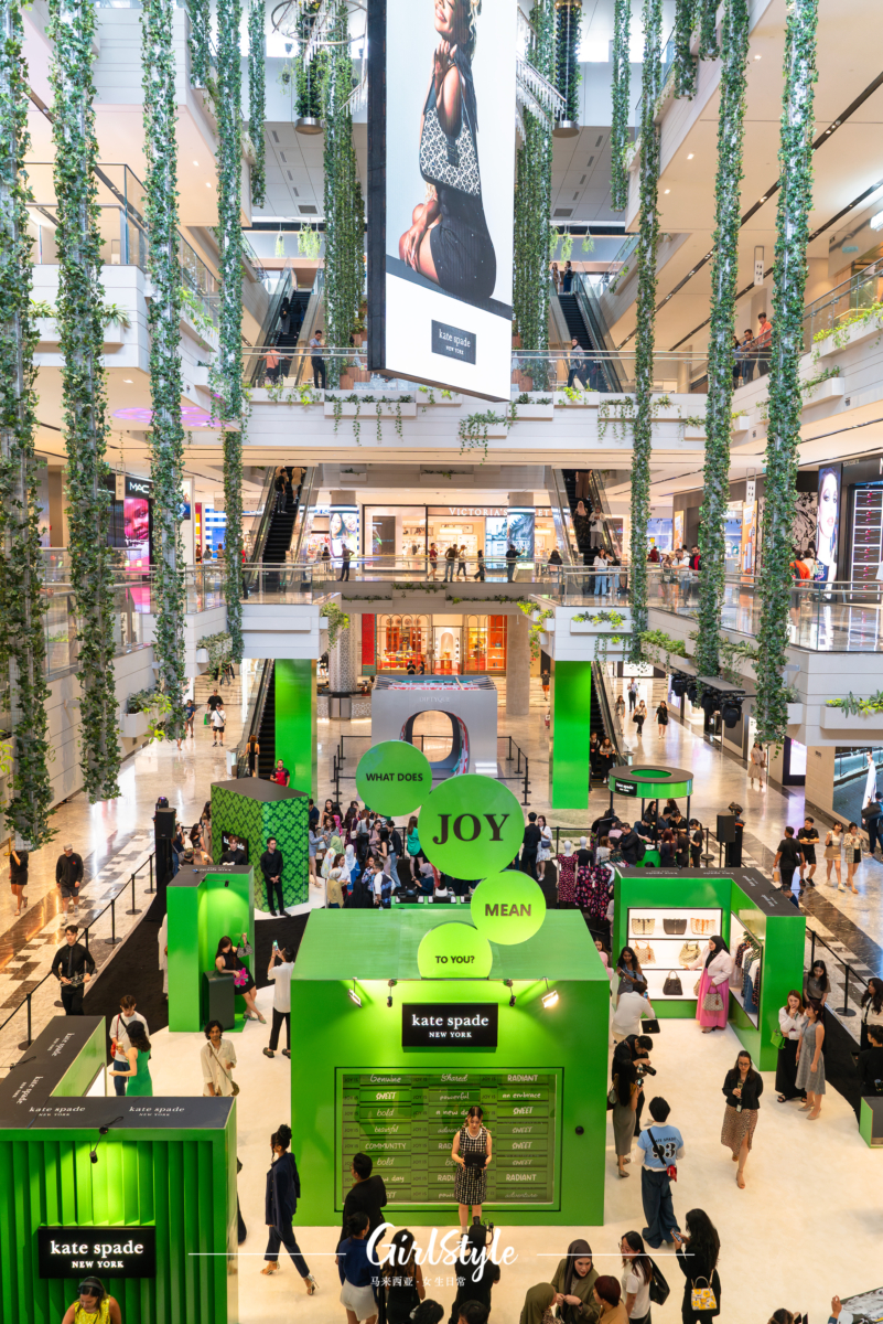 而 Spade Flower Jacquard「Black-multi」包款也会在这次的 TRX 快闪店独家亮相和贩售,想要抢先入手的朋友一定不能错过咯~快闪店的设计融入了 Kate Spade 的经典绿色和品牌标志性的 Spade Flower 印花,风格强烈,在各个角落打卡拍照都格外出彩!现场还设置了一个大型互动翻转版,展示了各种对快乐的诠释,趣味性十足~