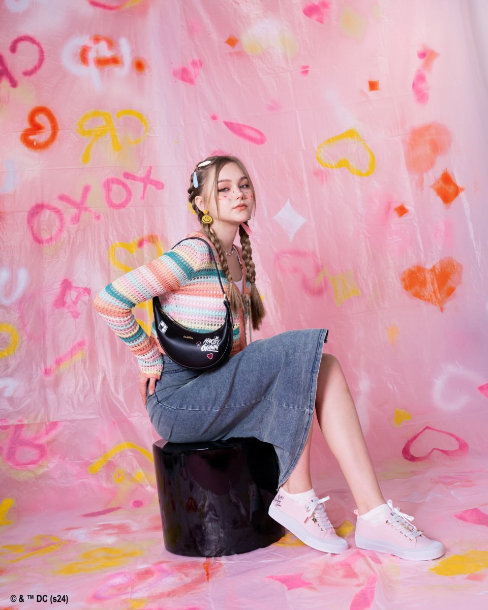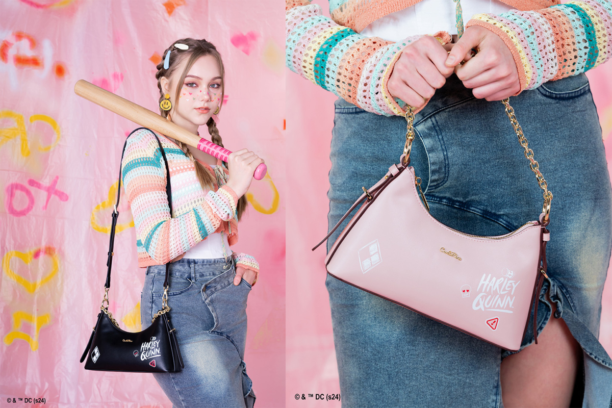 U型腋下包近年回潮,至今仍是许多女生们的心头好!不过这款U型有别于以往,采用左右不对称的设计,同样印上菱形图案以及Harley Quinn字样并缀以品牌Logo,一点都不沉闷还有种拽拽的街头风,上身妥妥的千禧辣妹!