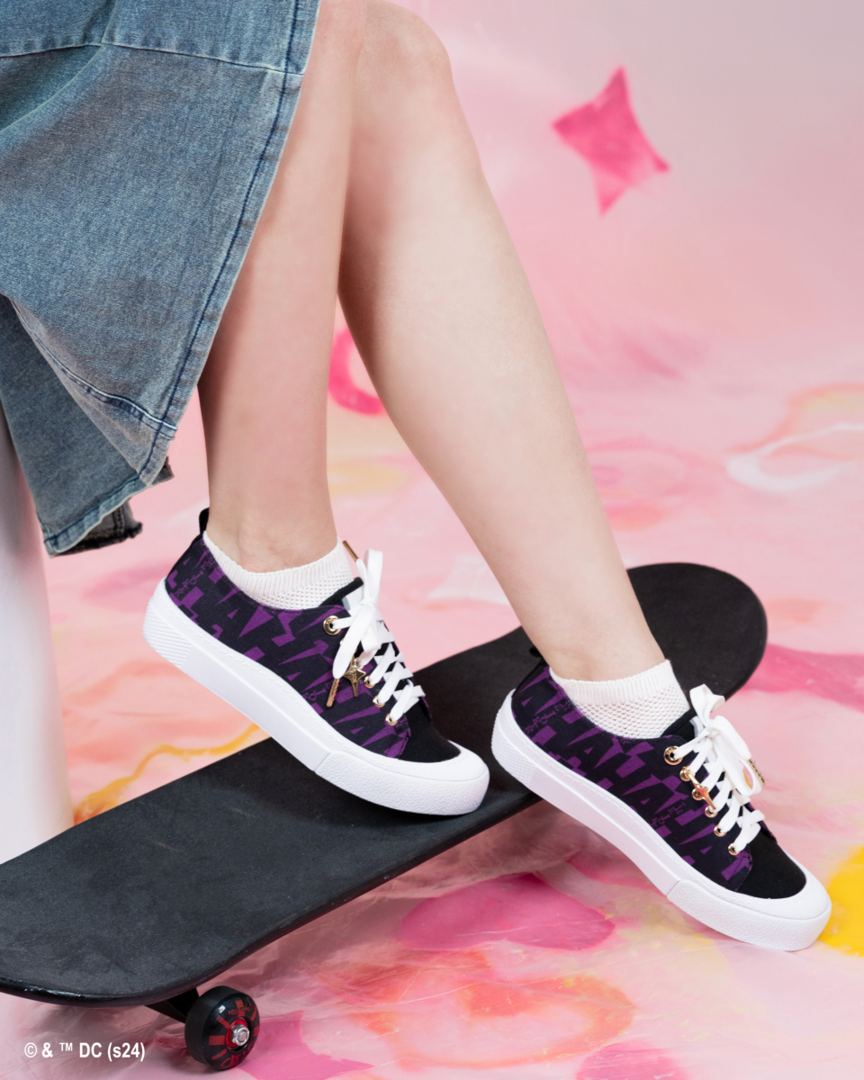 而如果你更偏爱些大胆酷炫的风格,那小丑 The Joker的联名款鞋履简直就是为你量身打造的。黑紫色帆布的设计,加上标志性的“HAHA”图案,立刻让人联想到小丑那种疯癫又神秘的气质。穿上它,绝对能让你释放你潜在内心的叛逆基因!