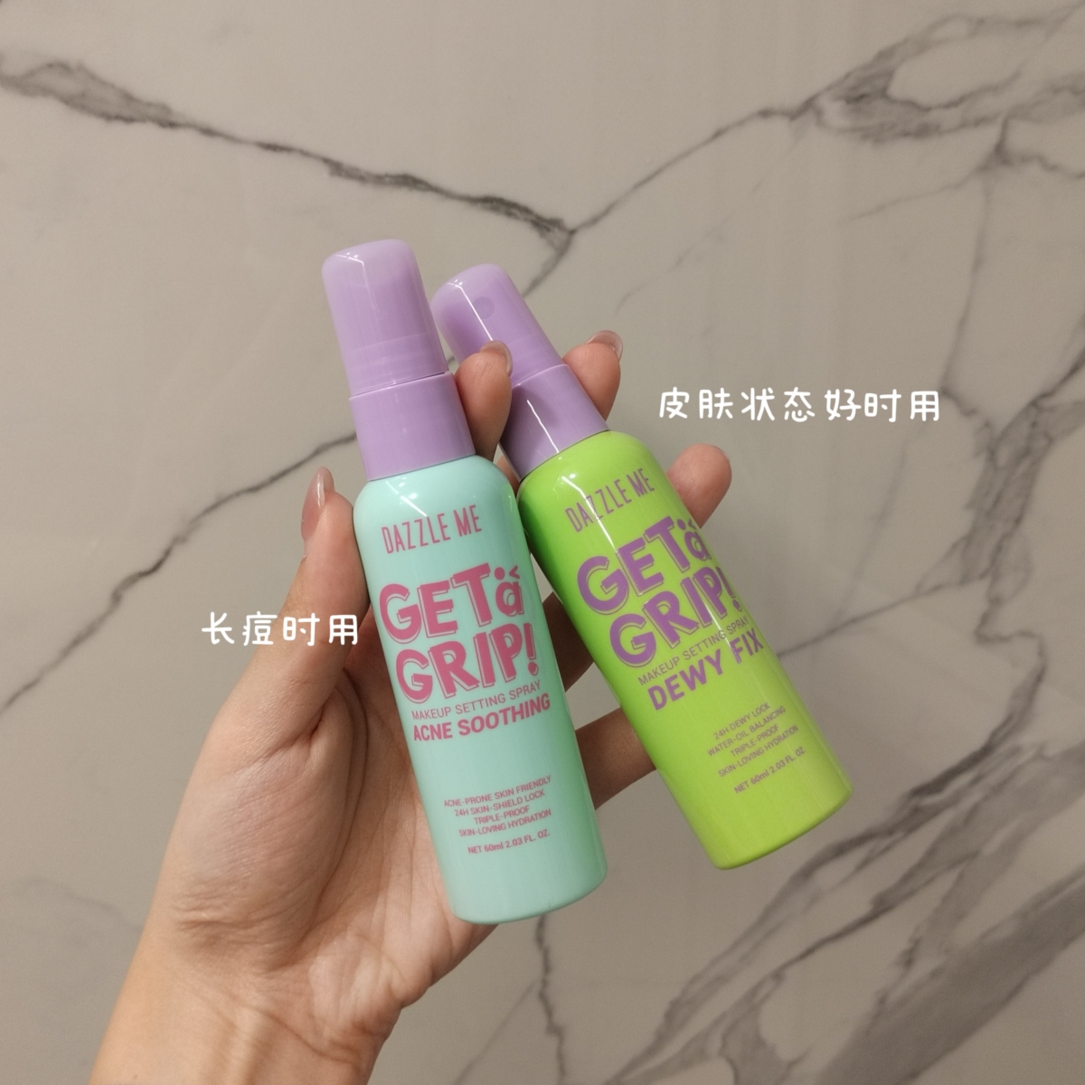 最棒的是“DAZZLE ME祛痘定妆喷雾”带有木質玫瑰香味,随手一喷香气扑鼻🌹,而且它不含采用低敏配方不含酒精,用起来安全又安心。另外,它的喷雾十分细腻均匀,完全不用担心太多水喷出来会融妆,一喷就能轻松覆盖全脸,完全没有妆面斑驳或结块的尴尬。尤其是对容易浮粉的区域,像是上了粉底后特别爱出问题的地方,这款喷雾简直是救星!