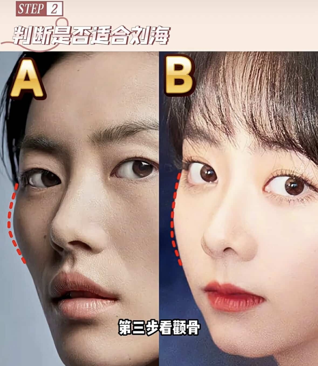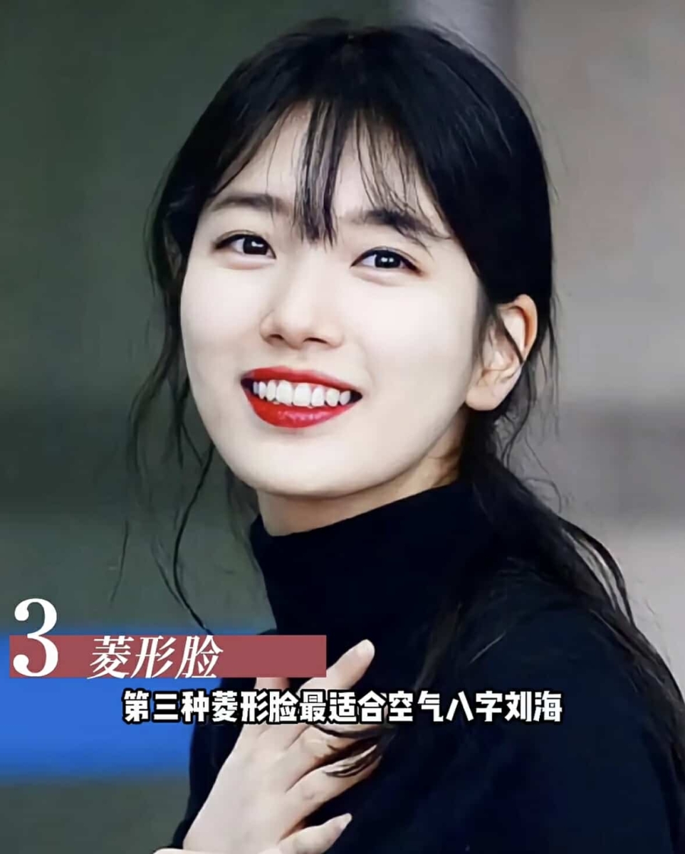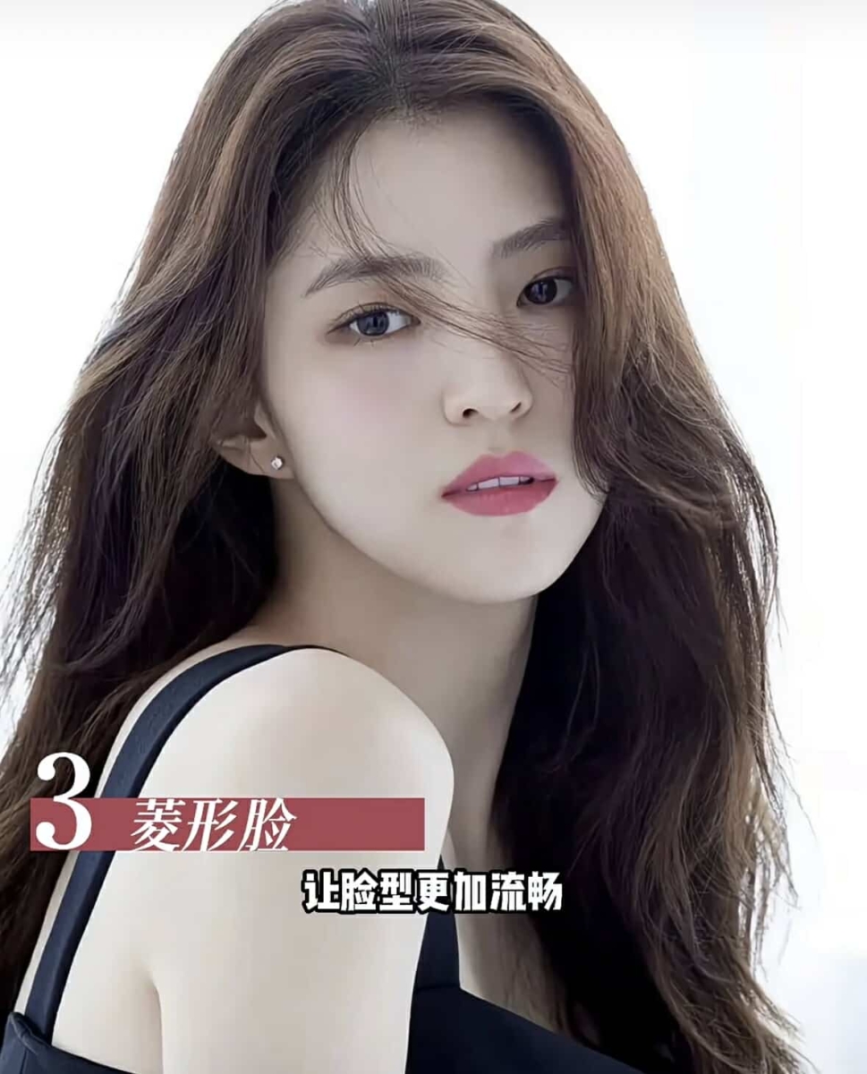 - 菱形脸:八字刘海是最佳选择,侧面八字刘海剪刀颧骨往下一点遮住颧骨。