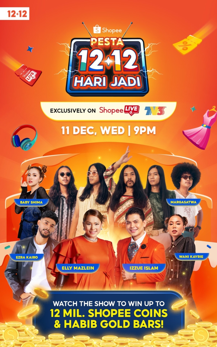 记得在12月11日晚上9点准时收看Shopee Live和TV3联合呈现的《Shopee Pesta 12.12 Hari Jadi》直播倒数特备节目。届时除了有 Izzue Islam、Elly Mazlein、Wany Kayrie、Ezra Kairo、Baby Shima、Margasatwa 等知名艺人参与演出,节目还会不时发放专属优惠券,以及开启 Shopee 小游戏,幸运儿还有机会赢取 Habib 10克金条 哦,真的是太狂啦!