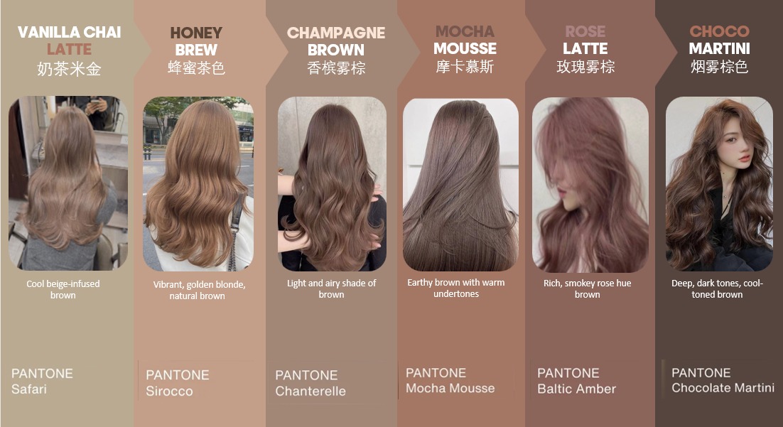 新一年的开始,又是时候从“头”开始换个造型,给自己一个全新的感受啦~如果你看腻了乏味无趣的黑色,或是过于花俏的大红大紫,那不如试试素颜温柔棕色系,不仅百搭还很显白、显气质哦~最重要的是它还跟上了全球色彩权威 Pantone 2025年度流行色:摩卡慕斯 Mocha Mousse 的潮流趋势哦!