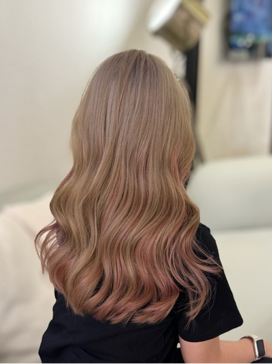 柔和的奶茶金发色带来如丝般光泽感,完美呈现了低调奢华的氛围感。搭配轻微挑染,让整体造型更加立体且自然,非常适合偏爱浅色系的姐妹们!
