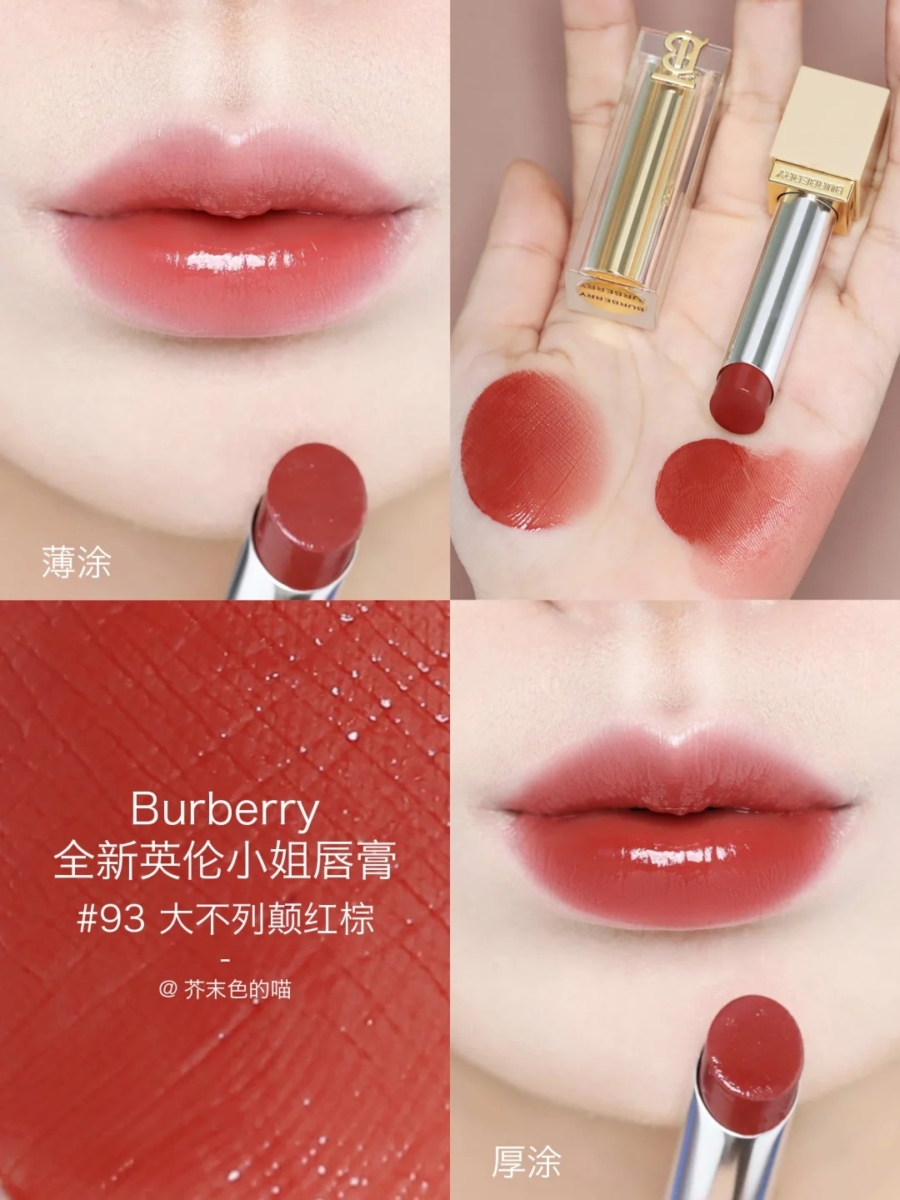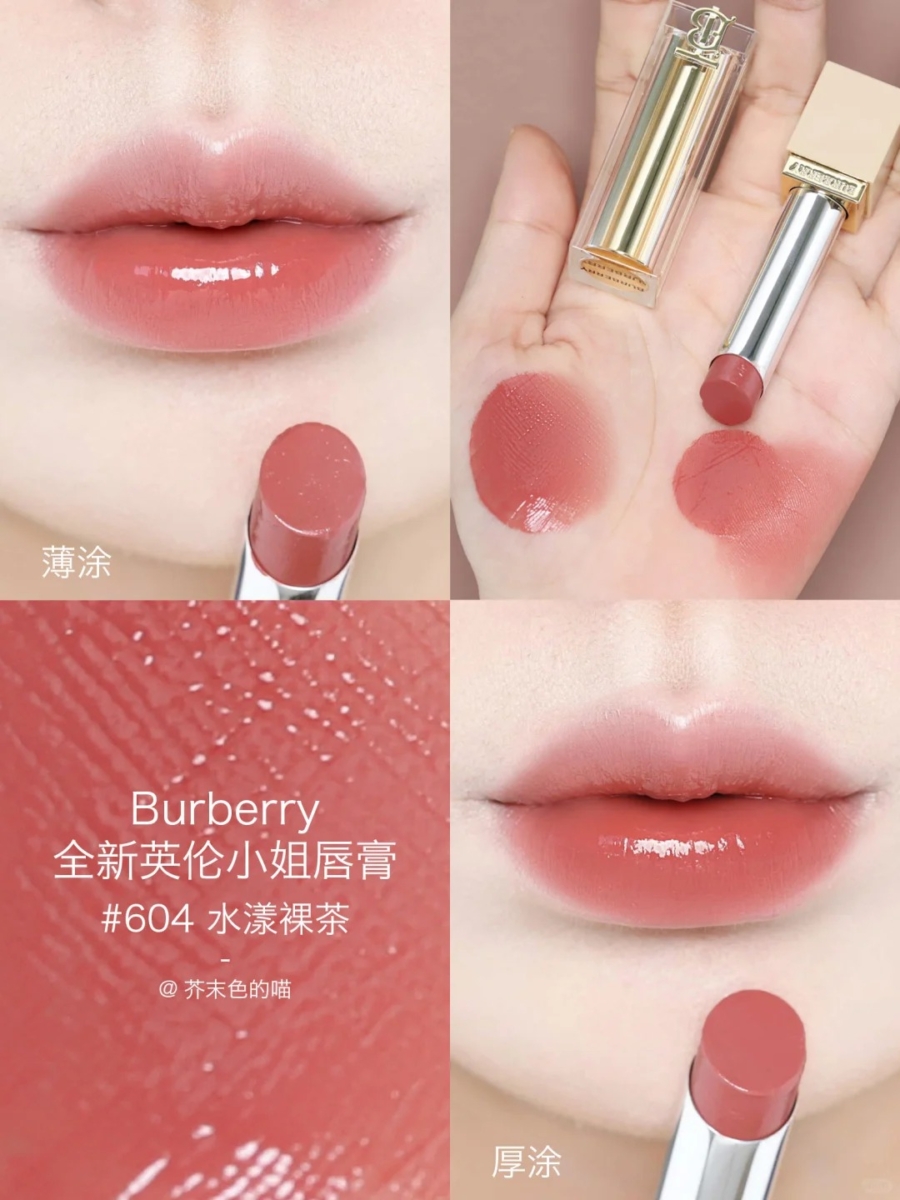 灵感源于 Burberry Trench 风衣和传统英式下午茶,薄涂是清新的杏仁奶色,厚涂带裸茶橘棕调,淡雅高级,特别显气色!