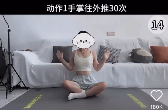 将双手抬至胸前,手掌朝外,用力向外推。这个动作可以有效锻炼手臂的肌肉群,特别是三角肌和肱二头肌。在做这个动作时,要注意保持背部挺直,避免耸肩。每次推的时候,尽量用力,并保持稳定的呼吸。重复30次,可以明显感受到手臂的肌肉在发力。